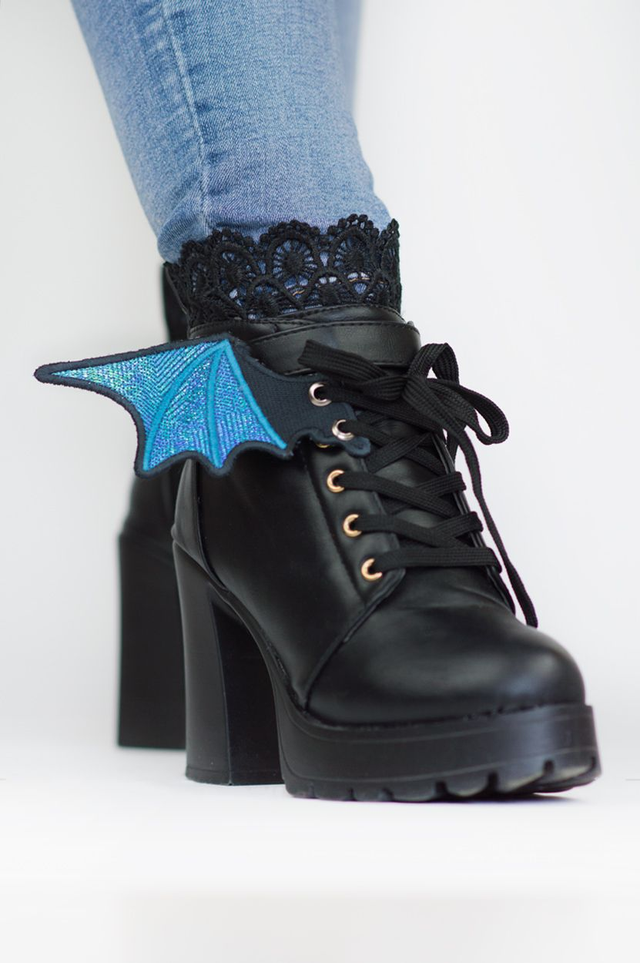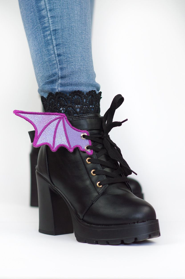 Une paire d'ailes brodées holographiques pour lacer aux chaussures et compléter son style! Vous pouvez me contacter par mail ou sur instagram si vous voulez des couleurs personnalisées :)