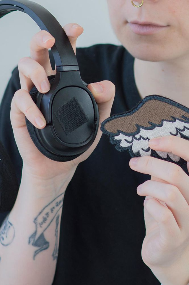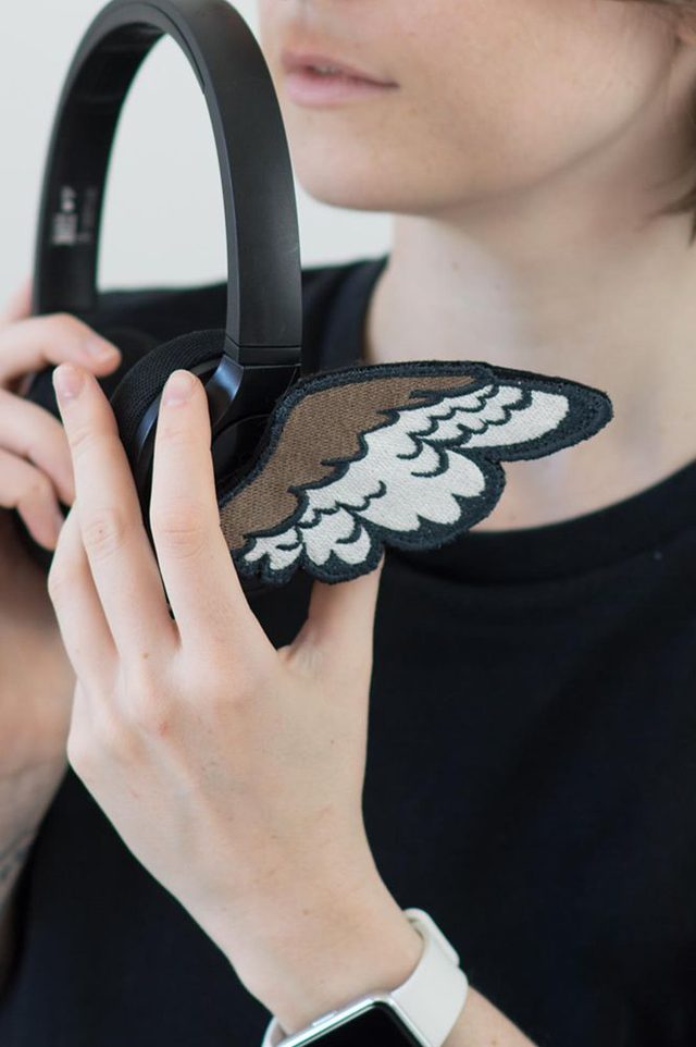 Choisi la paire d'ailes de ton choix pour orner ton casque, qu'il soit de musique ou anti bruit, tant que tu peux y coller le bout de scratch double face fourni avec ton achat :)