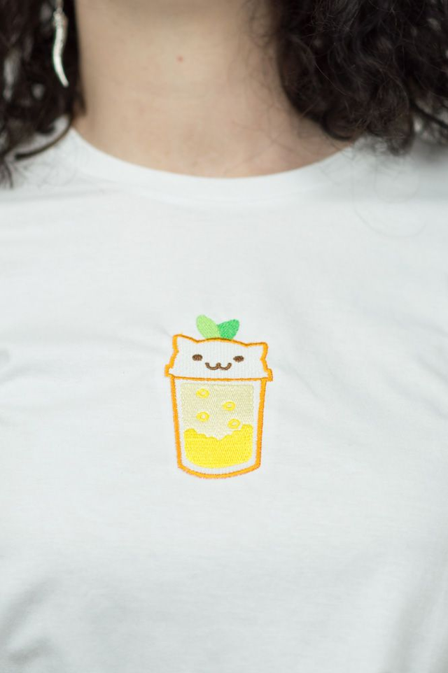 T-shirt 100% coton, brodé d'un Bubble Tea chat