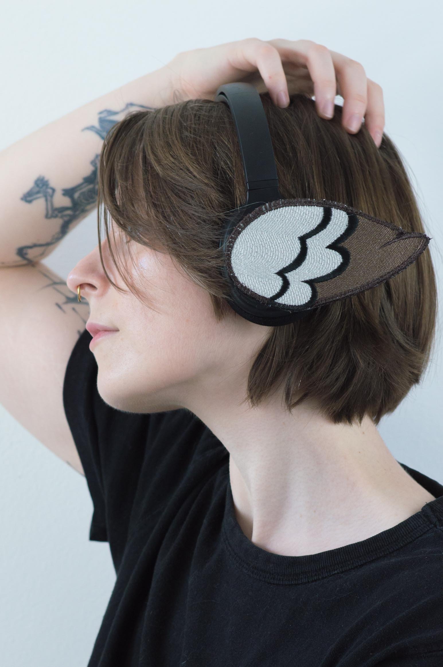 Choisi la paire d'ailes de ton choix pour orner ton casque, qu'il soit de musique ou anti bruit, tant que tu peux y coller le bout de scratch double face fourni avec ton achat :)
