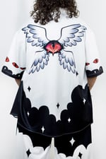 Chemise et short séraphin disponible en plusieurs coloris! L'ensemble est disponible à l'achat également séparément. Il est en polyester et élastique. La taille du short a une marge de 10/15cm ( entre l'élastique tiré et non tiré ) et la chemise est oversized.